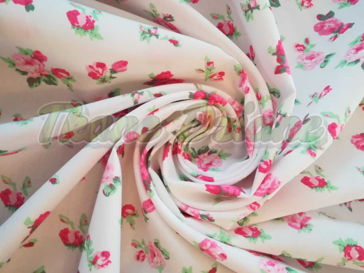 BAWEŁNA KOSZULOWA PREMIUM RÓŻE NA BIAŁYM