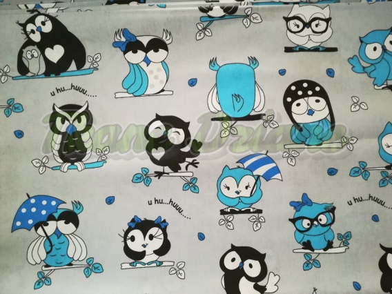 BAWEŁNA SZALONE SOWY NIEBIESKIE