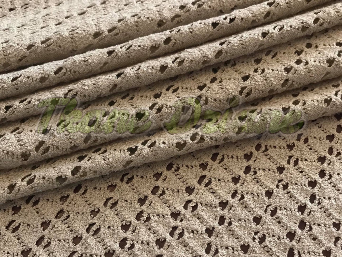 Bardzo ładna dzianina ażurowa w kolorze beżowym o szerokości 140cm. Idealnie nada się na narzutki, kardigany, sukienki, bluzki czy letnie worki, plecaki i siatki na zakupy...