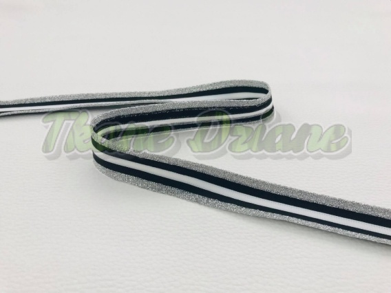 LAMPAS ELASTYCZNY BIAŁO-CZARNO-SREBRNYM 25mm