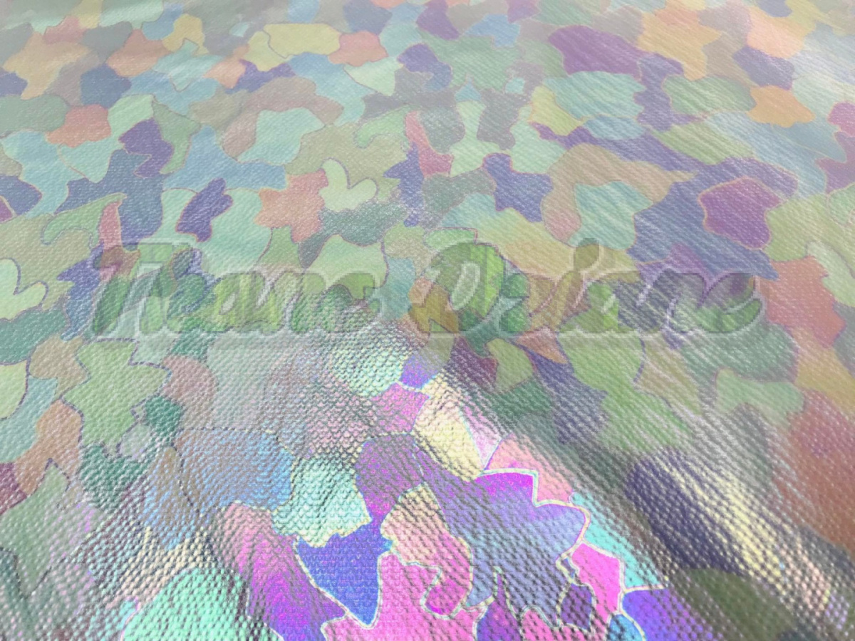 Lekka tkanina wodoodporna z fantastycznym efektem holograficznych cętek na białym podkładzie.