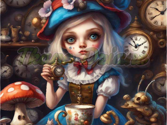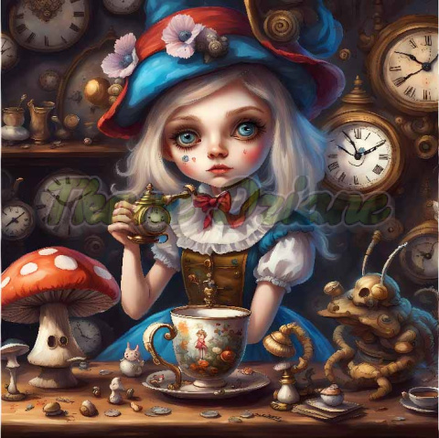 PANEL DRUKOWANY ALICJA W KRAINIE CZARÓW-ALICJA Z FILIŻANKĄ I ZEGRAMI NR 1
