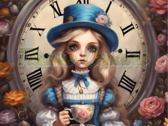 PANEL DRUKOWANY ALICJA W KRAINIE CZARÓW-ALICJA Z ZEGAREM