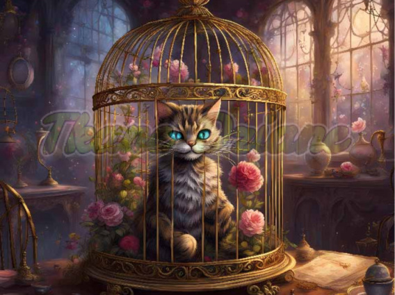 • PANEL DRUKOWANY ALICJA W KRAINIE CZARÓW-KOT W KLATCE
