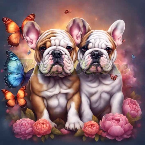 PANEL DRUKOWANY BULDOG ANGIELSKI W KWIATACH Z MOTYLAMI NR 3