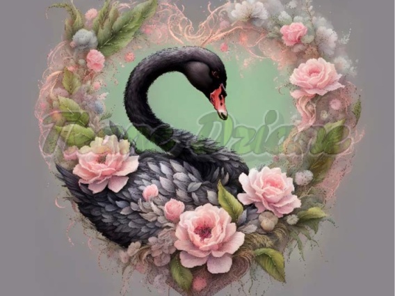 PANEL DRUKOWANY CZARNY ŁABĘDŹ W KWIATOWYM SERCU NR 21