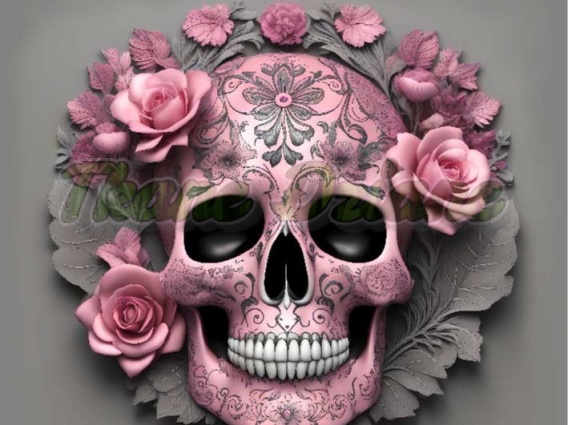 PANEL DRUKOWANY CZASZKA Z RÓŻOWYMI KWIATAMI NR 5