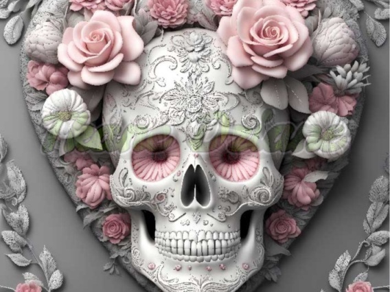 PANEL DRUKOWANY CZASZKA Z RÓŻOWYMI KWIATAMI NR 9