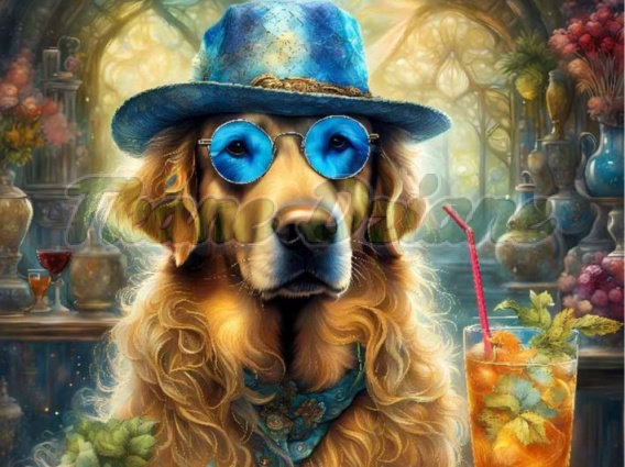 PANEL DRUKOWANY GOLDEN RETRIVER W KAPELUSZU I GARNITURZE NR 1