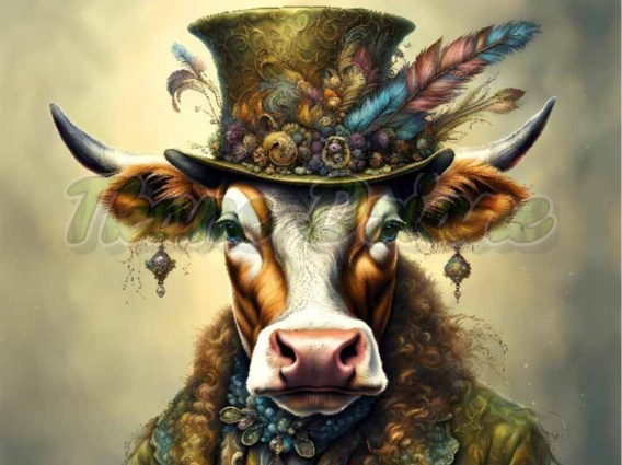 PANEL DRUKOWANY KROWA W KAPELUSZU I GARNITURZE NR 10
