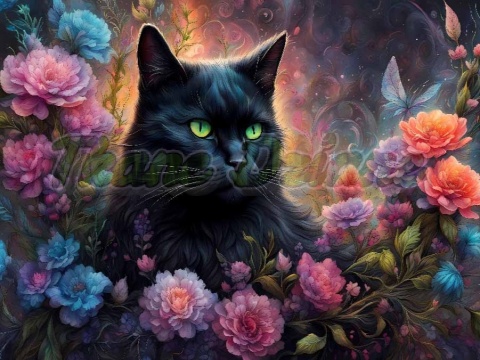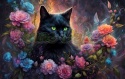 PANEL DRUKOWANY POZIOMY NA PODUSZKI CZARNY KOT W KWIATACH NR 1