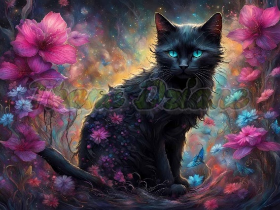 PANEL DRUKOWANY PROSTOKĄTNY POZIOMY/KOSMETYCZKA CZARNY KOT W RÓŻOWYCH KWIATACH