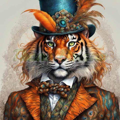 PANEL DRUKOWANY TYGRYS W KAPELUSZU I GARNITURZE NR 7