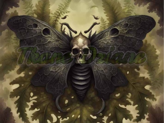 PANEL DRUKOWANY Z MCHU I PAPROCI- CZARNA ĆMA Z CZASZKĄ