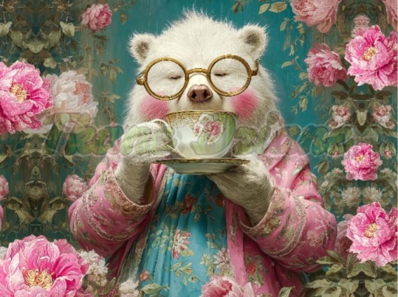 PANEL DRUKOWANY ZWIERZĘTA W PIWONIACH- NIEDŹWIEDŹ NR 7