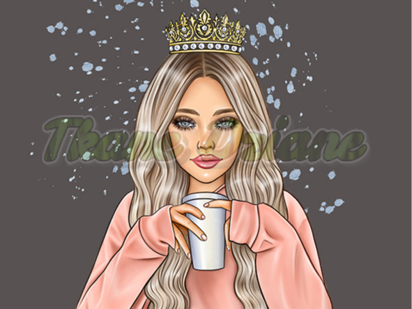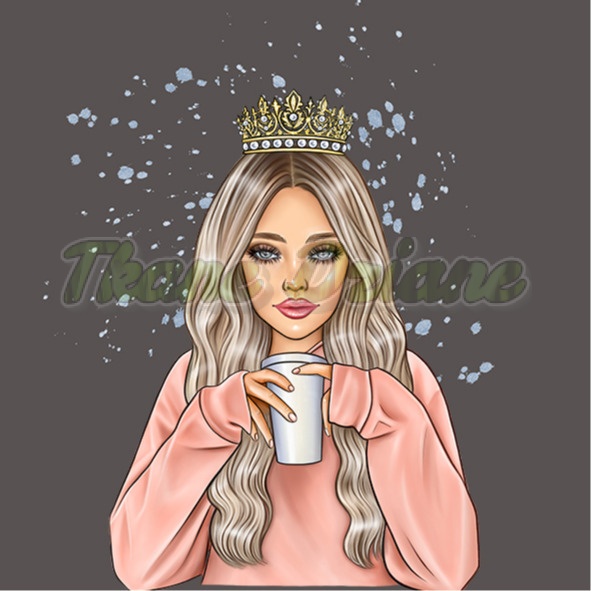 PANEL POLIESTER WODOODPORNY DZIEWCZYNA Z KORONĄ I KAWĄ 50 X 50 cm