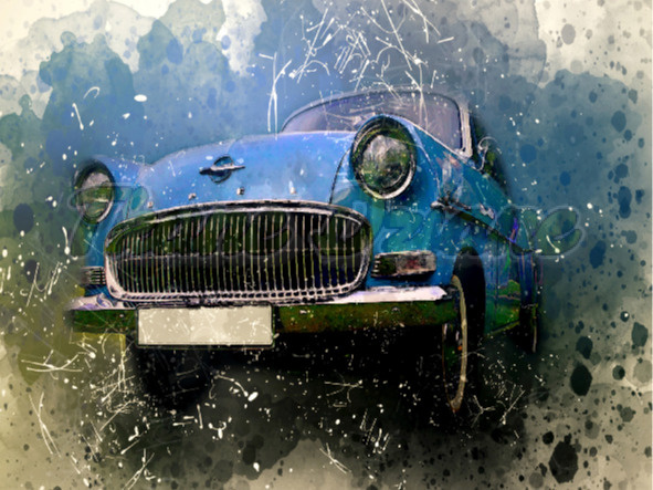 PANEL POLIESTER WODOODPORNY STARE SAMOCHODY NIEBIESKI 50 X 50 cm