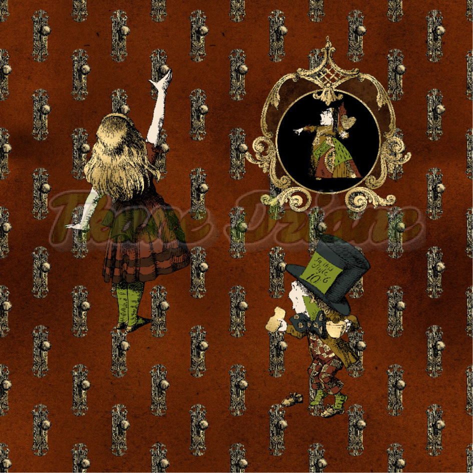 cena za 1 szt PANEL WELUR TAPICERSKI ALICJA, KAPELUSZNIK, KLAMKI BRĄZ - ALICJA W KRAINIE CZARÓW