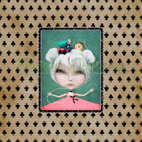 PANEL WELUR TAPICERSKI BIAŁA DAMA TREFL - ALICJA W KRAINIE CZARÓW
