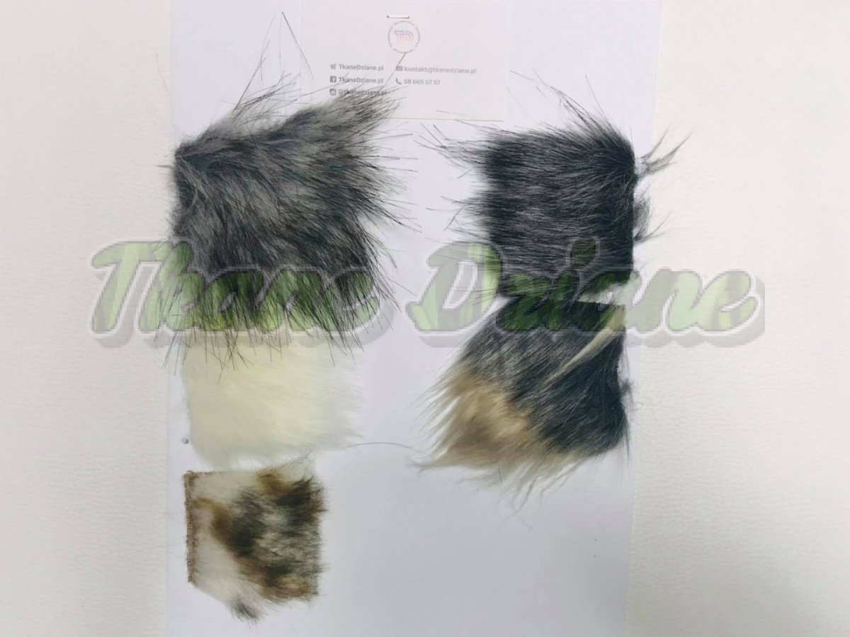 Próbnik 5 losowo wybranych futerek w naturalnych kolorach. Każda próbka wielkości ok. 7x5 cm.