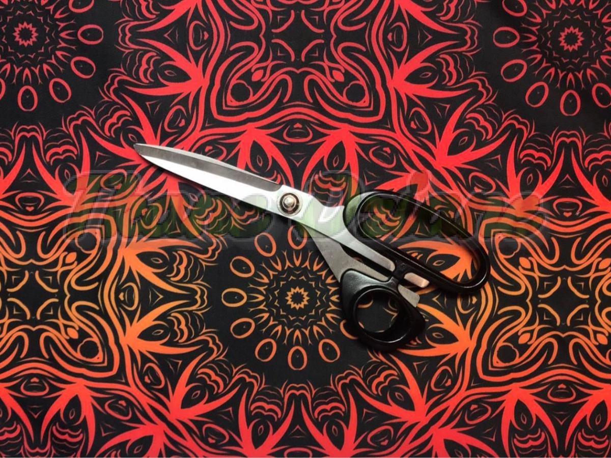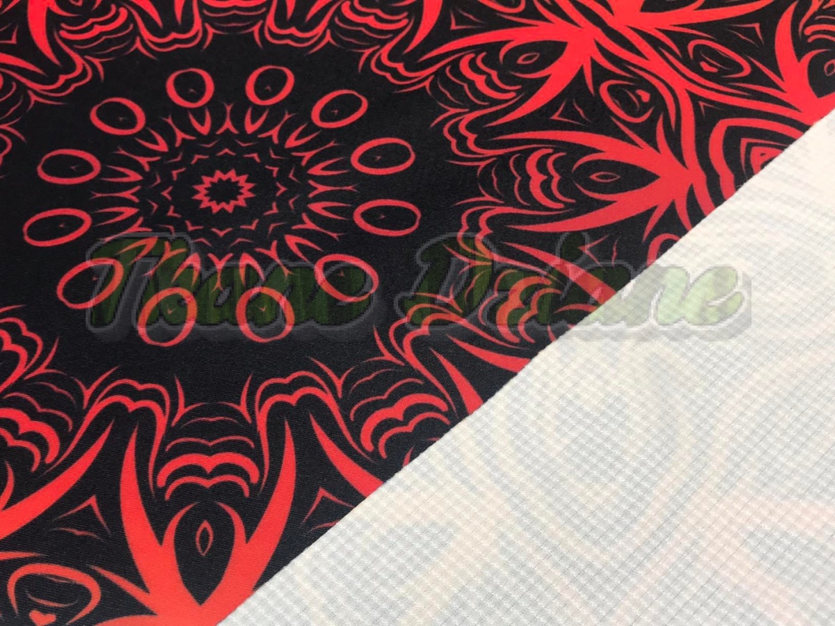 Cena za 1m SOFTSHELL LIGHT DRUKOWANY CZERWONO - POMARAŃCZOWE MANDALE, 180 g/m2, 148 cm