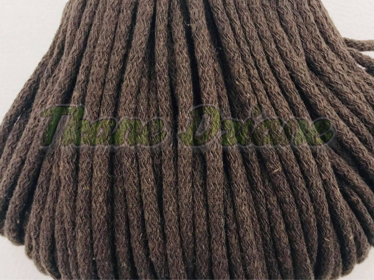 Sznurek 5 mm z recyklingowanej bawełny z poliestrowym rdzeniem, dzięki któremu jest znacznie bardziej wytrzymały, w kolorze BRĄZOWYM