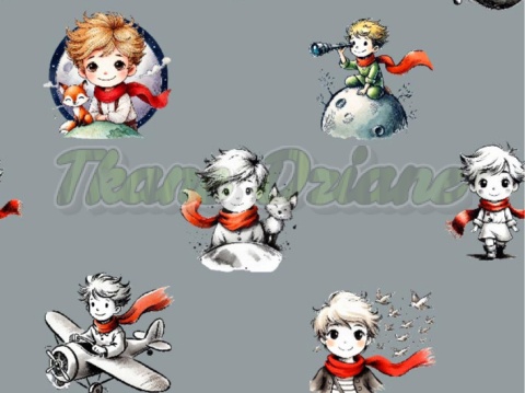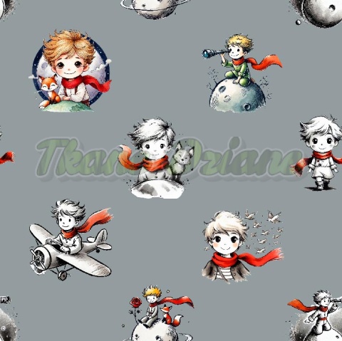 TKANINA DRUKOWANA MAŁY KSIĄŻE TŁO SZARE NR 4 mały wzór