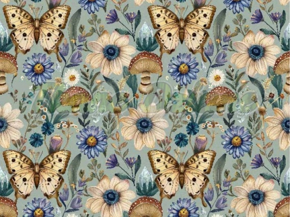 TKANINA DRUKOWANA MOTYLE I GRZYBY NR 3