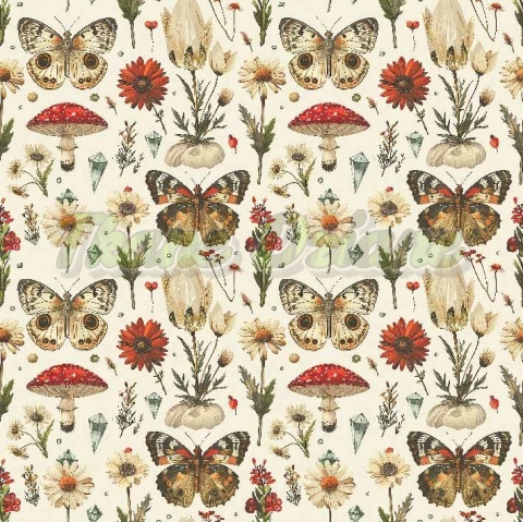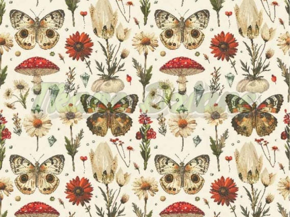 TKANINA DRUKOWANA MOTYLE I GRZYBY NR 5