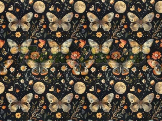 TKANINA DRUKOWANA MOTYLE I KWIATY NR 4