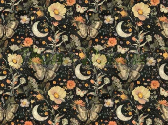 TKANINA DRUKOWANA MOTYLE I KWIATY NR 5