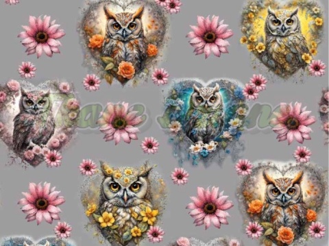TKANINA DRUKOWANA SOWY W SERCACH DUŻE