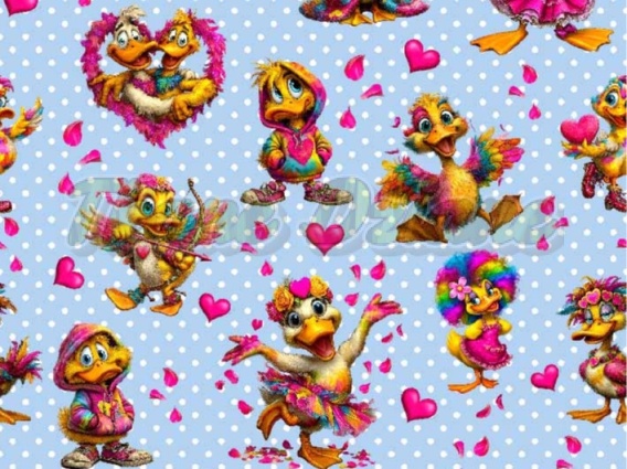 TKANINA DRUKOWANA WALENTYNKOWE KACZORY TŁO GROSZKI BB NR 7