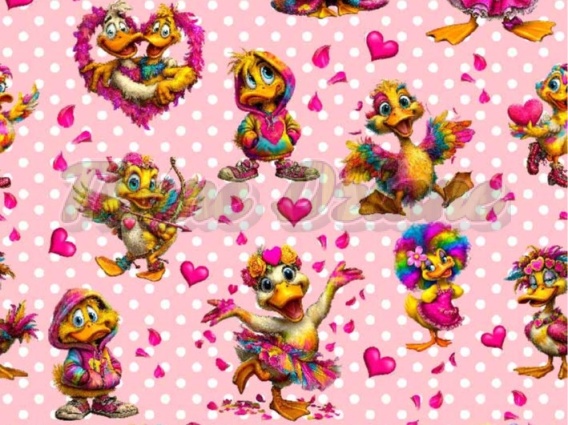 TKANINA DRUKOWANA WALENTYNKOWE KACZORY TŁO GROSZKI BP NR 5