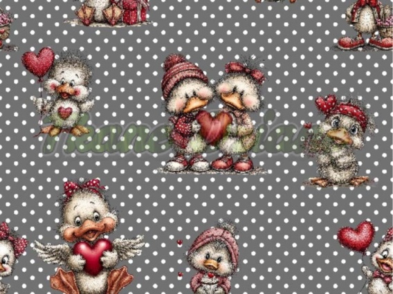 TKANINA DRUKOWANA WALENTYNKOWE KACZORY TŁO GROSZKI CSZ NR 14