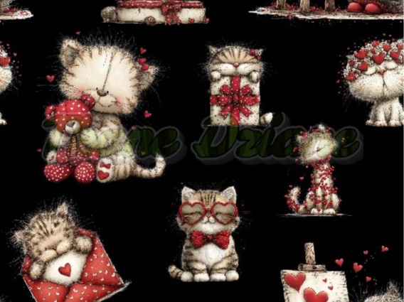 TKANINA DRUKOWANA WALENTYNKOWE KOTKI TŁO GROSZKI CZ NR 6