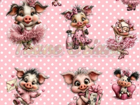 TKANINA DRUKOWANA WALENTYNKOWE ŚWINKI TŁO GROSZKI BP NR 7