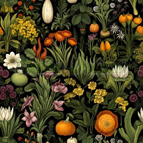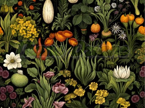 TKANINA DRUKOWANA WARZYWA I KWIATY NR 1