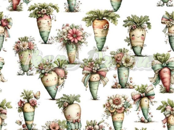 TKANINA DRUKOWANA WIELKANOCNE MARCHEWKI - mały wzór NR 2