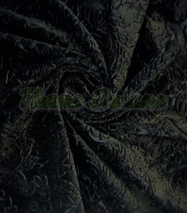 Piękny włoski welur, tłoczony w motywy roślinne, w kolorze czarnym, o szerokości 152 cm i gramaturze 240g/m2 z przeznaczeniem na welurowe sukienki, crop topy, jak i garnitury czy spódnice, a również dresy. W tym sezonie to absolutny "musthave".