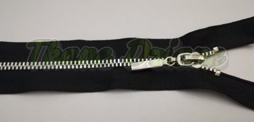 Zamek metalowy, srebrny na czarnej taśmie, kostkowy #3, długość 25 cm.